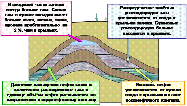 Физические свойства и состав нефти в пределах одного и того же продуктивного пласта не всегда остаются постоянными (Рис.2.8).