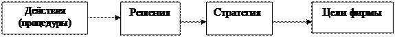 Логика этого определения такова: деятельность аппарата управления и принимаемые на ее основе решения формируют стратегию развития предприятия, которая позволяет фирме достичь своих целей (рис.2)