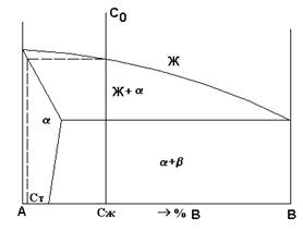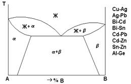 Рис.4. Типовая диаграмма состояния с образованием эвтектики.