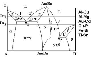 Рис. 10. Типовая диаграмма состояния с образованием устойчивого химического соединения.