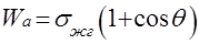 При увеличении краевого угла от 00 до 1800 относительная работа адгезии изменяется от единицы до нуля.