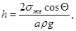 h - высота поднятия жидкости; sжг - поверхностное натяжение на границе жидкой и газовой фаз;