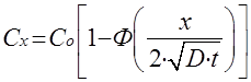 где СХ ‑ концентрация диффундирующего элемента на глубине Х от источника диффузии; СО ‑ начальная концентрация диффундирующего элемента.