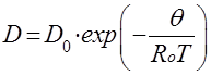 где D О – произведение констант, которое определяется типом кристаллической решетки; θ ‑ работа активации диффузии, отнесенная к молю твердого раствора (кдж/кмоль); RO ‑ универсальная газовая постоянная; RO = 8,3143 кдж/кмоль; Т ‑ абсолютная температура, 0К.