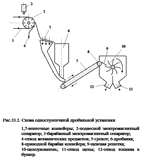 Схема одноступенчатой дробильной установки представлена на рис.33.2.