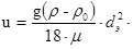 Из этого уравнения можно получить скорость осаждения частицы u: