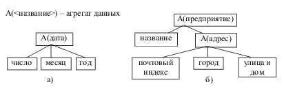 Агрегат данных – поименованная совокупность элементов данных внутри записи, которую можно рассматривать как единое целое. Агрегат может быть простым (включающим только элементы данных, рис. 2.2,а) и составным (включающим наряду с элементами данных и другие агрегаты, рис. 2.2,б).