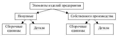 Это позволит упростить формализацию процессов обработки данных. На-пример, оформление заказа на покупные элементы изделий в данном примере может быть описано один раз (для второго уровня иерархии).