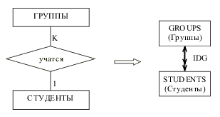 - Каждая связь со степенью больше двух и связь, имеющая атрибуты, преобразуется в таблицу БД (рис. 8.5).