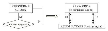 - Унарная связь n:m реализуется с помощью промежуточной таблицы. Например, для отражения связи ассоциируется между терминами таблицы КЛЮЧЕВЫЕ СЛОВА, нужно добавить таблицу АССОЦИАЦИИ, в которой будут два внешних ключа на таблицу КЛЮЧЕВЫЕ СЛОВА (рис. 8.6).