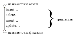 (Ключевое слово WORK необязательно). Для фиксации или отката транзакции система создаёт неявные точки фиксации и отката (рис. 5.1).