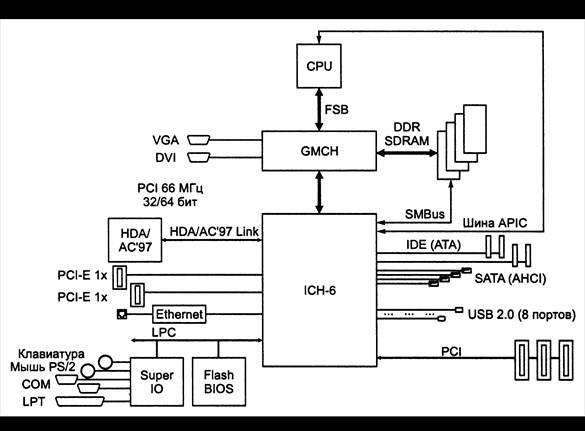 Рис.4.1. Пример шинно-мостовой архитектуры PC