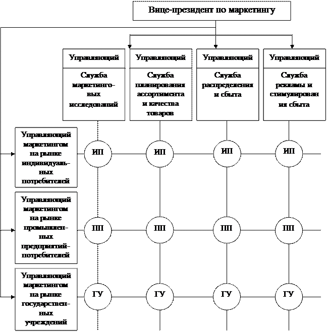 Рис. 8.11 - Блок-схема матричной (товарно-рыночной) организационной структуры отдела (службы) маркетинга