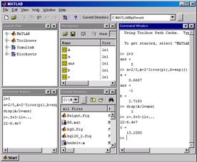 Запуск MATLAB6.x отображает на экране окно рабочей cреды, подобное показанному на рис.1.