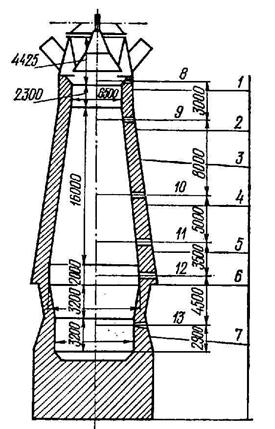 Рисунок 5.2 – Схема оснащения доменной печи оборудованием для изучения хода доменного процесса