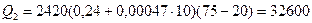 Учитывая потери через пол порядка 400 ккал/ч., имеем
