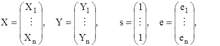 – вектор, лежащий в двумерной гиперплоскости p, натянутой на векторы s, X. (Здесь мы снова предполагаем, что векторы s и X – неколлинеарные). Поставим задачу: найти такие a, b, чтобы вектор e имел наименьшую длину. Другими словами, мы хотим наилучшим образом аппроксимировать вектор Y вектором