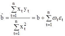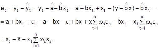 Итак, мы показали, что в случае нормально распределенных ошибок величина (32) распределена по закону Стьюдента. Заметим, что при определенных условиях регулярности на xt соотношения (32) и (33) справедливы асимптотически и без предположения о нормальности ошибок регрессии.