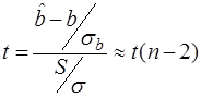 Наиболее просто выглядит t-статистика при гипотезе Ho: b = 0, а именно