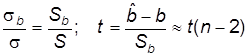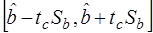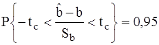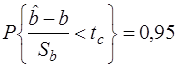 Статистику уравнения (32) можно использовать для проверки гипотезы Ho: b = b0. Вопреки альтернативной гипотезе H1: b ¹ b0. Предположим, что верна гипотеза Ho , и зададимся, например, 5%-ной квантилью t-распределения с (n–2) степенями свободы tc (при 40 степенях свободы tc=2,021), т.е.