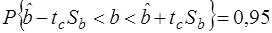 Доверительный интервал накрывает истинное значение параметра b с заданной вероятностью (в данном случае – 95%).