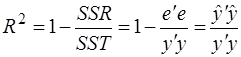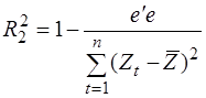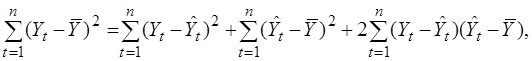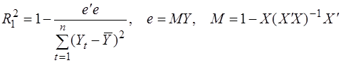 Коэффициент R2 показывает качество подгонки регрессионной модели к наблюдаемым значениям Yt. Если R2=0, то регрессия Y на X1, … Xk не улучшает качества предсказания Yt по сравнению с тривиальным предсказанием.