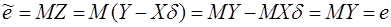 Матрица M одна и та же для обеих моделей, так как в них один и тот же набор регрессоров. Остатки во второй модели равны