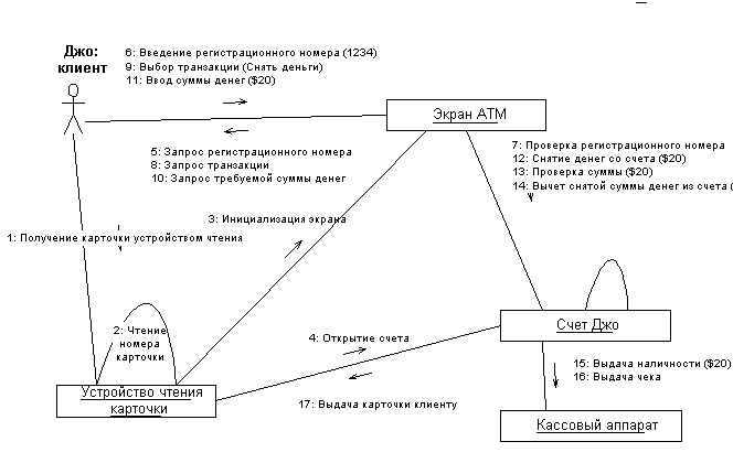 Рис. 9.3. Кооперативная диаграмма, описывающая процесс снятия Джо со своего счета $20