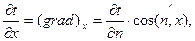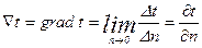 Второе определение. Температурный градиент представляет собой максимальное изменение температуры на единицу длины в направлении нормали n к изотерме.