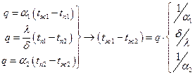 Из выражений тепловых потоков, найдем разности температур, просуммируем левые и правые части и после несложных преобразований, получим