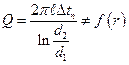 Здесь, в отличие от плоской стенки, тепловой поток зависит от радиуса