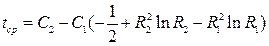 Термические напряжения в цилиндрической стенке определяются по уравнениям (1.11) и (1.12) в которых использование формулы (1.13) для нахождения средней температуры может привести к значительным погрешностям. Более точно среднемассовая температура полого цилиндра внутренним радиусом