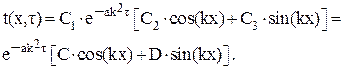 Представим, что температура определяется произведением двух функций, одна из которых зависит только от пространственной координаты, а вторая - только от времени. Это эквивалентно введению следующей замены переменных: