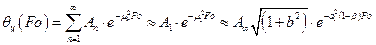 Далее расчет нагрева (охлаждения) ТМТ производится по уравнениям (3.19)…(3.22) в стадии РРН, но с учетом асимптотических выражений (3.64)…(3.68), удобных для вычислений при больших числах Био.