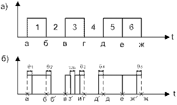 ). Кратковременные изменения значащей позиции единичного элемента в пределах одного единичного интервала называются дроблениями (интервал в – г). Дробления сопровождаются появлением новых значащих моментов, длительность дроблений tдр, интенсивность дроблений и моменты возникновения дроблений – случайные величины. Опасность краевых искажений и дроблений заключается в том, что они могут явиться причиной появления ошибок.