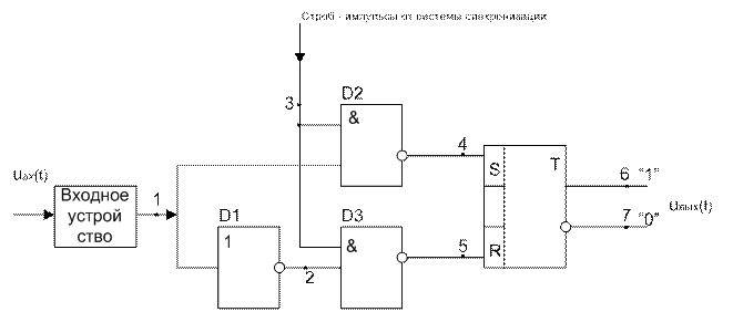 Рассмотрим один из возможных путей технической реализации регистрации стробированием. Структурная схема устройства приведена на рис.2.10, а соответствующие временные диаграммы – на рис.2.11.