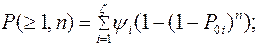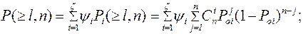 а вероятность появления n- элементной комбинации с L и более ошибками определяется как: