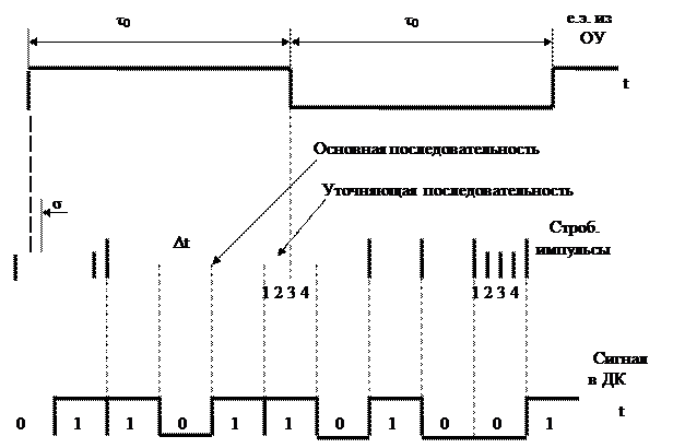 Суть метода состоит в том, что в ДК передаются сведения не только о характере значащей позиции е.э. (переход от «0» к «1»), но и также сведения о том, в каком месте между импульсами стробирования это произошло.