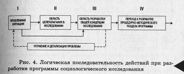 Третье требование — логическая последовательность всех элементов программы. Нельзя начать с выбора принципиального плана, не представляя цели и задачи исследования. Бессмысленно пытаться формулировать частные гипотезы, не представляя объект в целом (хотя бы на уровне общих гипотез). Нельзя начинать отработку методов сбора данных, не имея принципиального плана исследования в целом и до того, как ключевые понятия подверглись эмпирической интерпретации.