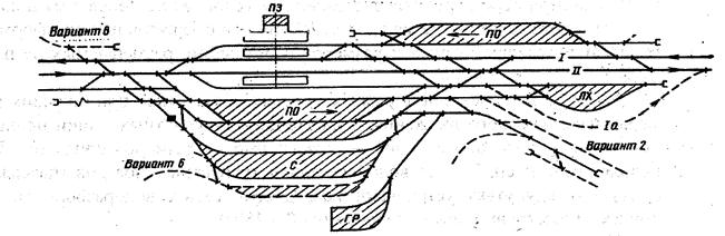 Рисунок 23. Варианты примыкания подъездных путей к участковой станции.