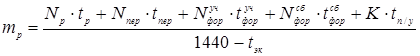 tэк – продолжительность экипировки локомотивов и смены бригад за сутки, мин;