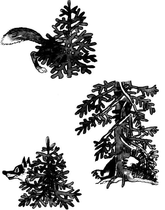 5. Развитие зрительного внимания. Предложите ребенку рассмотреть картинку «Кто спрятался?» (см. с. 29) и назвать спрятавшихся за елками животных.
