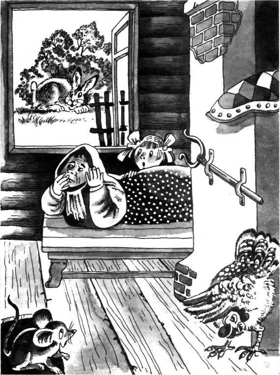 Никто не отзывается. Вошла мышка в теремок и стала в нем жить. Прискакала к терему лягушка-квакушка и спрашивает: