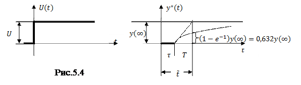 Поскольку реальная реакция на импульс зашумлена измерительными помехами и искажена неконтролируемыми возмущениями, то она будет иметь форму кривой на рис. в). Для её аппроксимации функцией (5.17) может быть использован МНК.