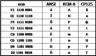 Если старший бит кода равен нулю (бит8=0), то система кодировки совпадает с ASCII, причем каждый из первых 128 символов кодируется одним байтом.