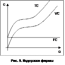 Общие издержки (TC) – сумма постоянных и переменных издержек фирмы в связи с производством продукции в краткосрочный период (см. рис. 9).
