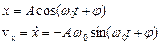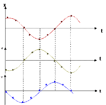 Смещение, скорость и ускорение при гармонических колебаниях.