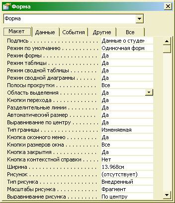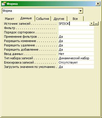 Рисунок 11 — Окно свойств для объекта Форма, страницы Макет и Данные