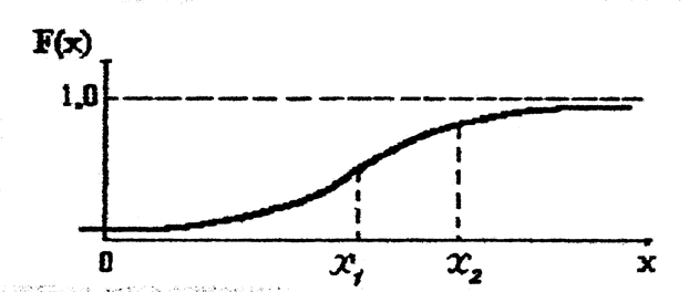 Рис.3.4 Вид функции распределения F(x) непрерывной случайной величины.