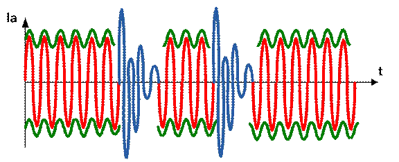 Это вид работы при котором в момент передачи сигнала (при нажатом ключе) происходит амплитудная модуляция несущей частоты тональной частотой, а в момент паузы генерируется немодулированная несущая частота.